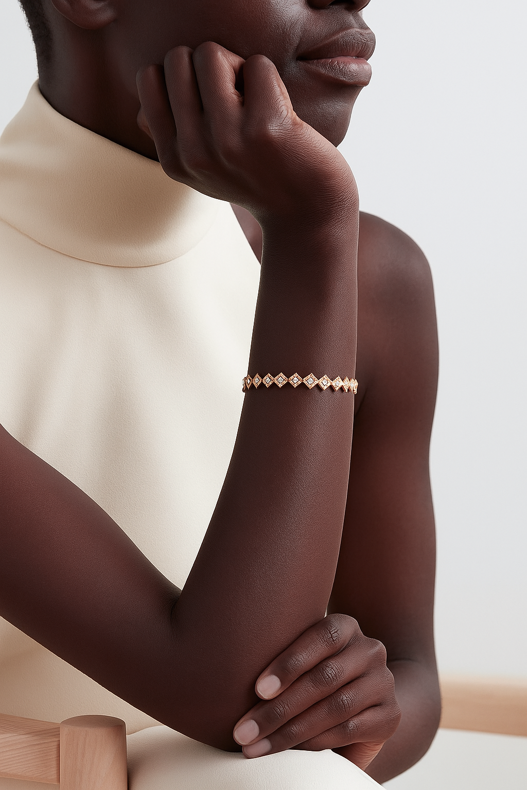 Rhombus Shape Tennis Bracelet | 1.55 CTW | 10K Gold